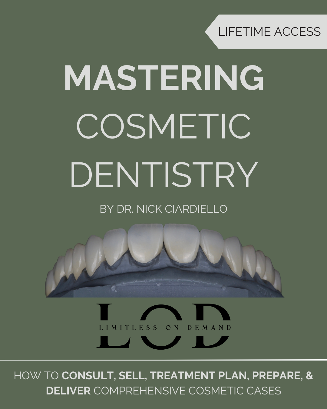 Limitless On Demand, led by Dr. Nick Ciardiello, is the ultimate destination for earning your dental continuing education credits. It provides comprehensive training across all aspects of dentistry, helping you enhance your skills and expand your practice—from beginner to Super GP. Unlike other courses that seem to teach dentists procedures for primarily Fee For Service practices, our Limitless Workflow allows you to still live in an insurance-based practice while building your FFS brand.